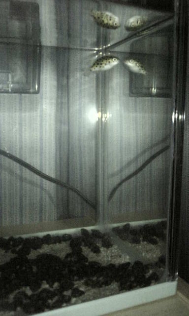 …と、言うのもこの魚、汽水域に棲む魚だそうで水槽の水に多少の塩分が必要だとか…